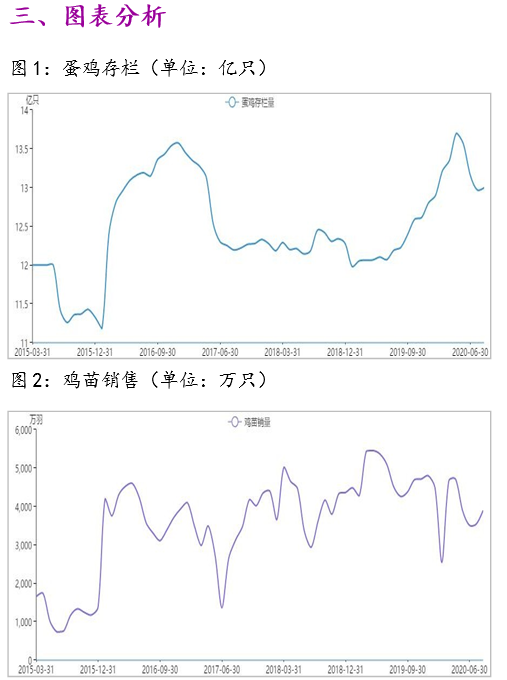 主销区平均价格 4.10 元/斤,较昨日涨 0.05 元/斤。随着中秋节逐渐临近,食品厂备货结束,商超备货即将开始, 现货价格回调后趋于稳定,但各环节仍有余货。随着中秋节的逐渐临近,鸡蛋现货价格即将进入回调周期。8 月全国蛋鸡存栏 12.997 亿,环比 7 月小幅上涨。鸡龄结构中,在产蛋鸡、待淘老鸡占比环比下降,后备鸡占比增加。下半年新增开产量基本确定,淘汰量尚不明晰,因此下半年鸡蛋现货价格走势将更多的受到未来老鸡淘汰量的影响。若未来养殖单位增加老鸡淘汰量,将有效淘汰过剩产能,利多年底现货价格;反之则不利于年底现货价格。操作建议,短期日内短线操作,中长期等待鸡蛋 2101 合约操作机会,后期持续关注鸡蛋现货价格走势及老鸡淘汰进度。