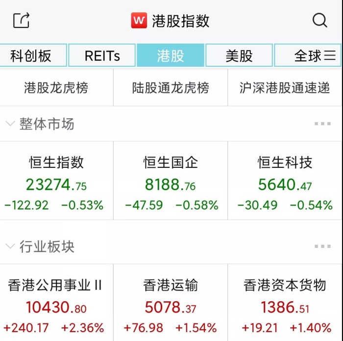 1月3日,2022年首个交易日,港股高开低走,恒指收跌0.53%报23274.75点,恒生科技指数跌0.54%报5640.47点。