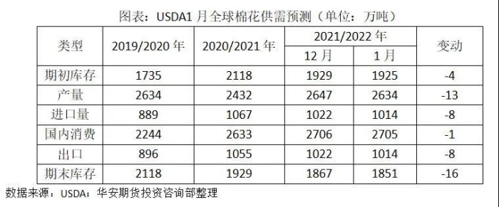 “从USDA公布的棉花供需报告可以看出,1月预测数据较12月份报告变化主要体现在全球产量变动方面,原因是美棉以及印棉产量调减所致;而消费方面全球消费整体维持稳定不变。外围市场对需求的乐观估计,叠加产量减少,伴随美元指数的走弱,是推动美棉价格连创新高的主要原因。”姚禹进一步分析。