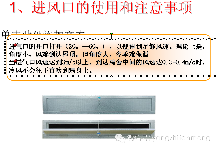 切记:鸡舍那点温度低,就缩小该处进风口,那一点温度高就扩大此处进风口
